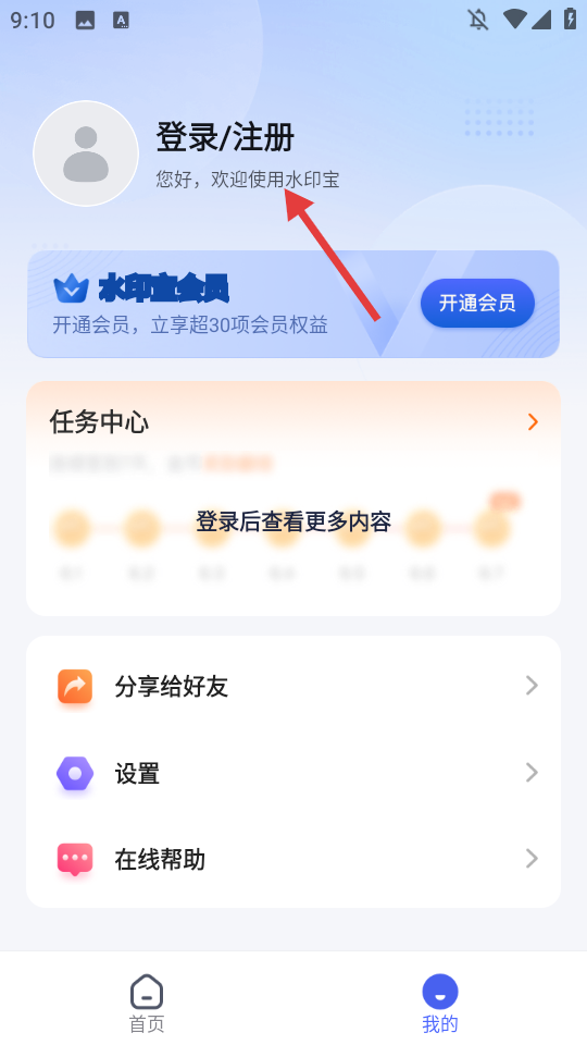 2、在个人页面,点击【登录/注册】,进入登录页面。