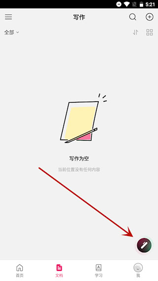 2、进入文档模块界面后,点击右下方笔形图标,开启编辑功能