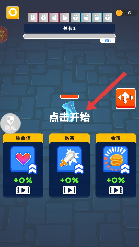 1、进入游戏关卡1界面,点击【点击开始】按钮开启游戏。