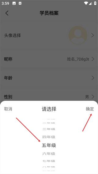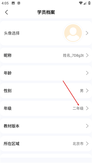 3、在学员档案中,点击下方【年级】选项。