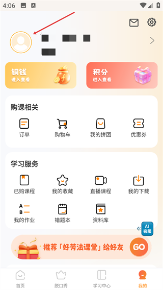 2、在【我的】页面,点击头像区域,进入学员档案编辑界面。