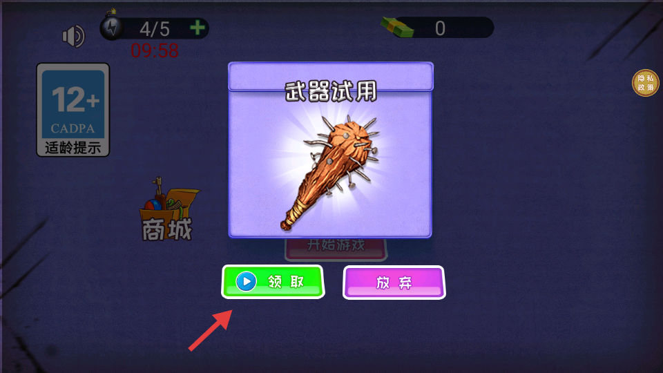 2、商城解锁/了解武器效果,优先试用免费武器,提升伤害输出。