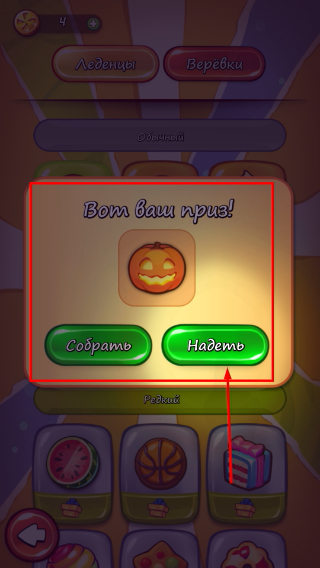 2、获得南瓜道具后,点击绿色的穿戴按钮,即可将该道具应用到游戏角色身上。