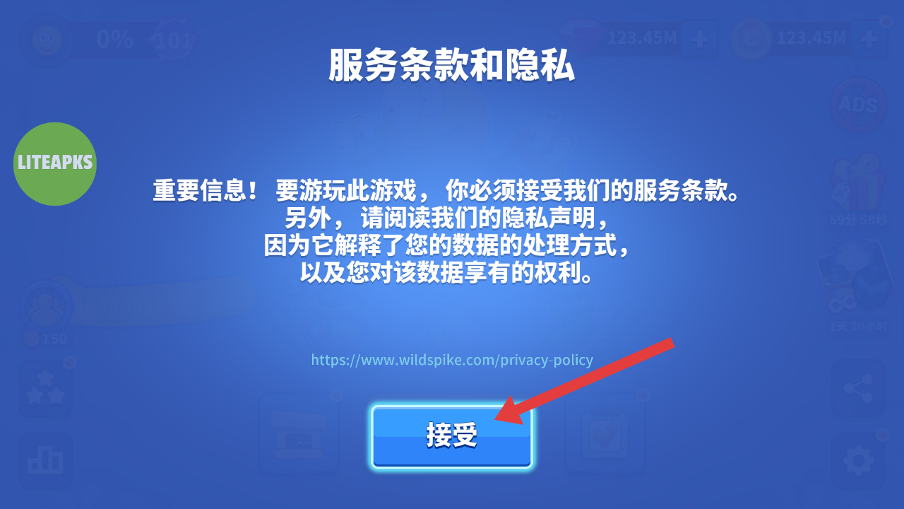 1、玩家打开游戏后,点击【接受】即可进入游戏。