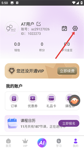 1、打开密码酷App,在【我的】页面点击右上角【设置】图标哦。