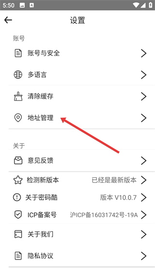 2、在设置页面找到【地址管理】选项并点击,即可进入收货地址管理页面啦。