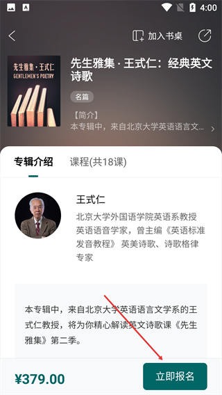 3、查看课程信息后,点击底部的【立即报名】按钮。