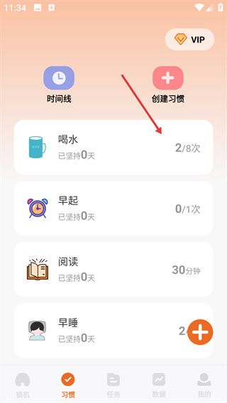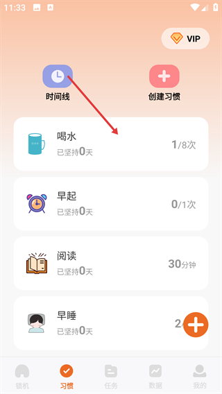 4.习惯养成:自定义习惯打卡,设置重复次数,长期追踪自律进度。