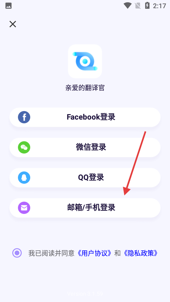 1、打开亲爱的翻译官APP并登录,进入首页点击拍照按钮