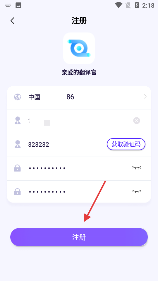 3、在注册页面填写手机号、验证码、密码、确认密码。