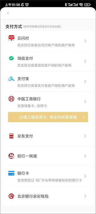 3、绑定支付方式(支持微信、支付宝、云闪付、京东等)。
