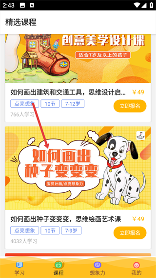 2、配套绘画水平测评系统,根据年龄与表现推荐适配课程,提升学习效率。