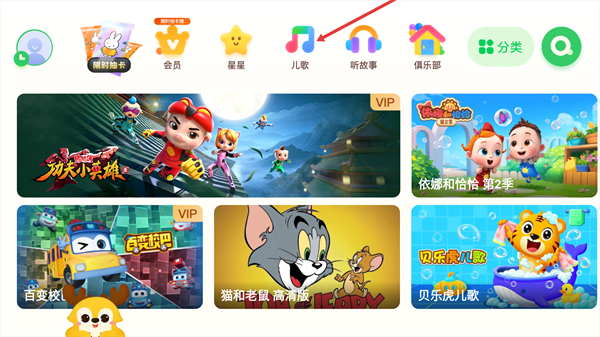 1、进入主页面,点击顶部的【儿歌】功能按钮。