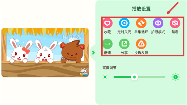 4、可选择【收藏】、【定时关闭】等功能,进行播放相关的设置操作。