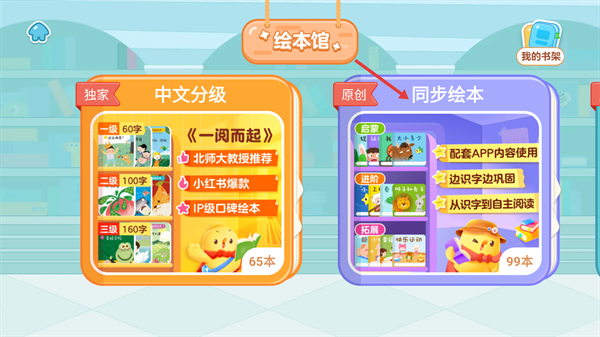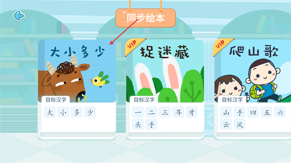 3、在【同步绘本】分类下,可选择目标书籍如【大小多少】。