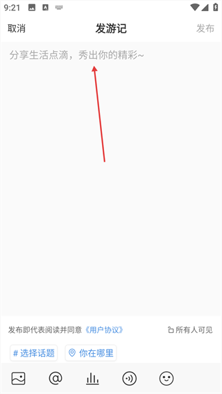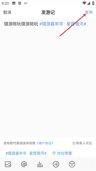 4、完成编辑后,点击右上角【发布】按钮,完成动态发布操作。