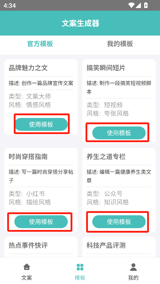 3、配备丰富文案模板,从严谨公文到活泼软文,为不同风格创作提供参照。
