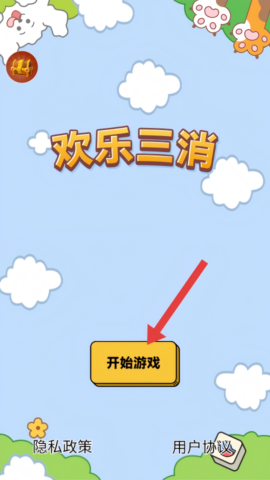 1、在游戏初始界面,点击【开始游戏】按钮,进入欢乐三消的关卡挑战。