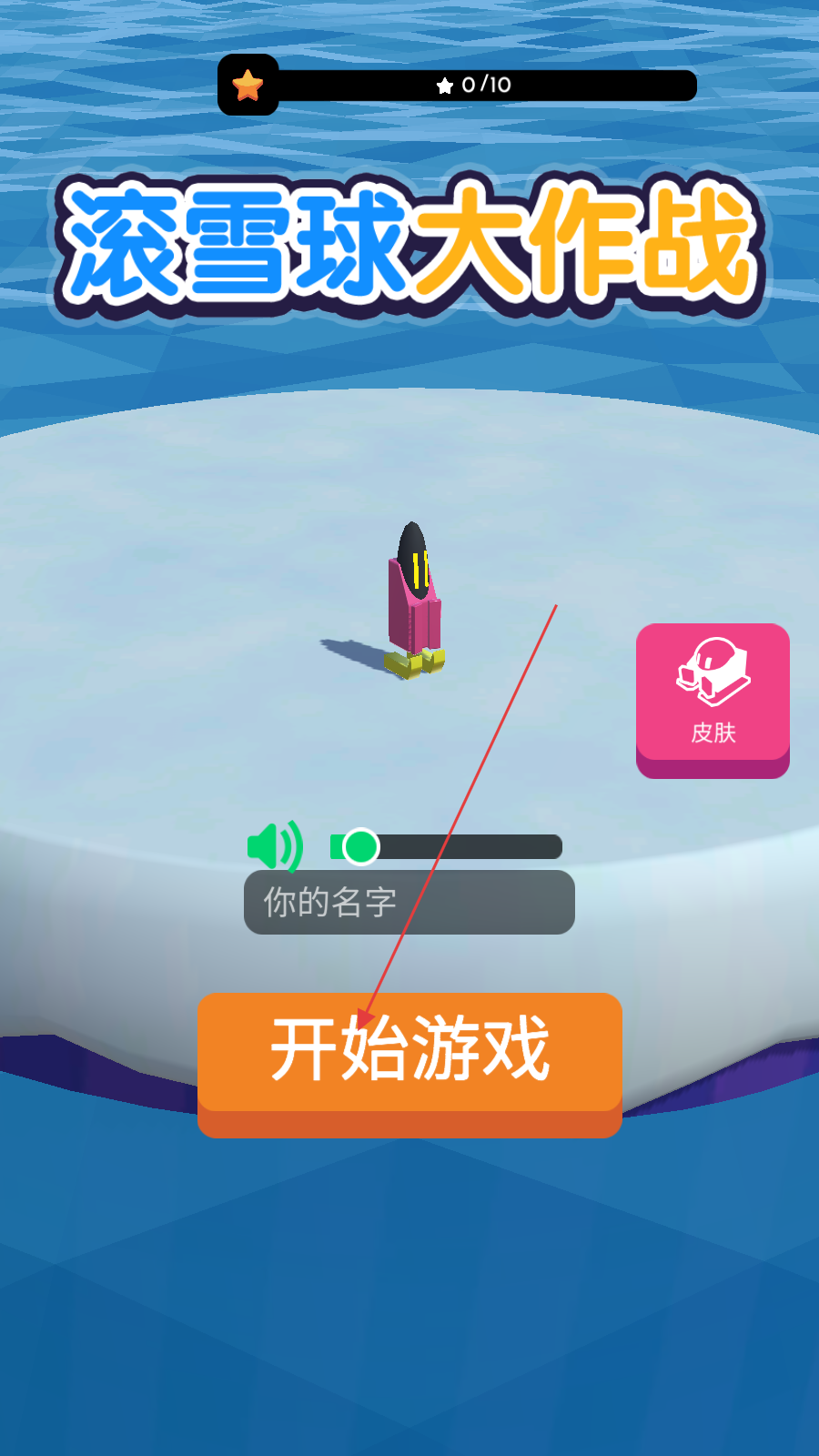 1、进入滚雪球大作战游戏界面,输入【你的名字】后,点击【开始游戏】按钮,开启游戏之旅。