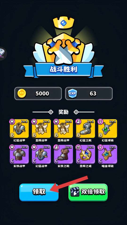 4、战斗胜利后,点击【领取】按钮获取奖励。