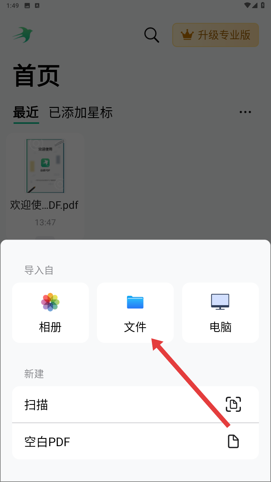1、打开迅读PDF软件,可以看到最近使用的PDF文件,点击+导入文件