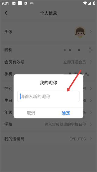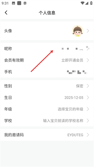2、在【个人信息】页面中,选择【昵称】选项,触发修改弹窗。