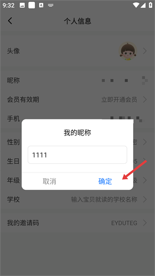 4、确认内容后,点击【确定】按钮,完成昵称修改。