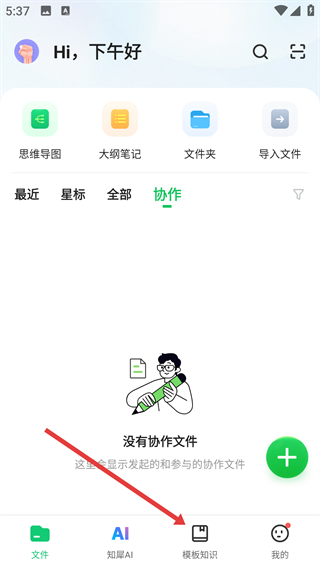 1、打开【知犀思维导图】App,点击下方的【模板知识】,开启模板使用的第一步呢。