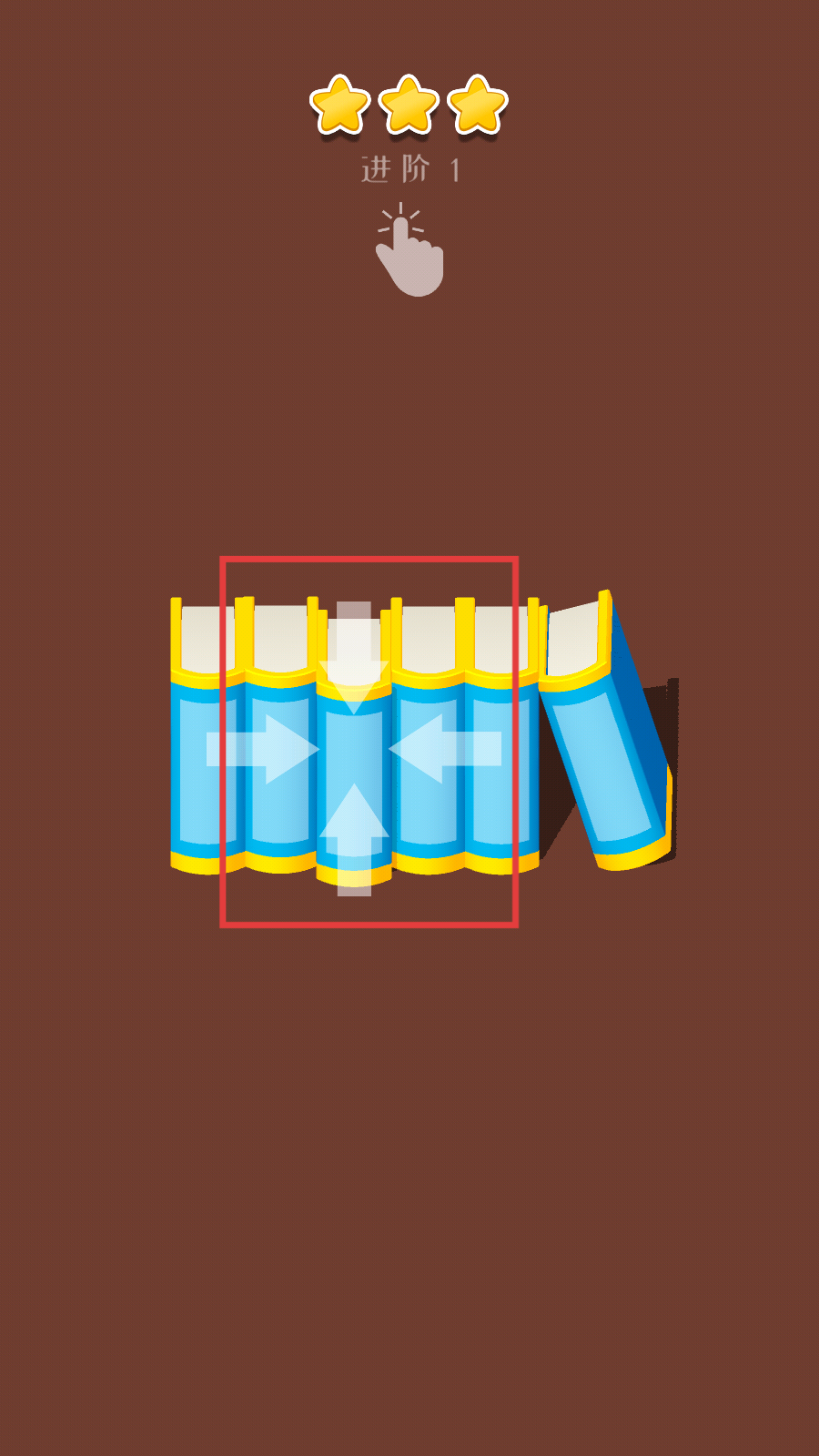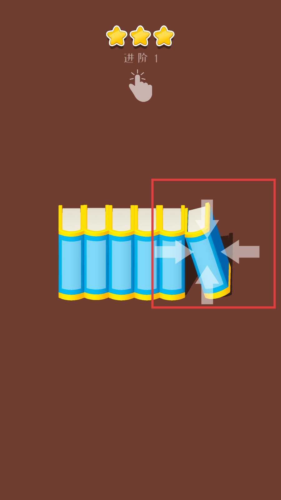 1、进入【进阶1】关卡,根据提示操作,调整中间的书,使其与周围的书排列整齐。