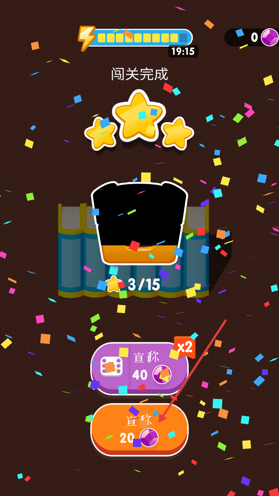 4、闯关完成后,界面会显示获得的星星数量,可点击【宣称】按钮领取对应的奖励。