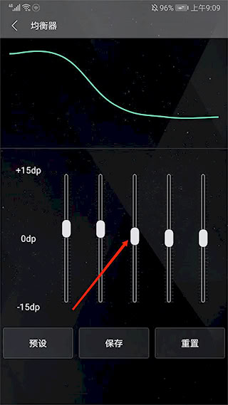 4、进入均衡器界面后,通过拖动界面上的 “椭圆形” 滑块按钮,即可对均衡器的各项参数进行调节。