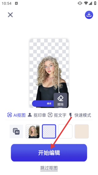 3、完成抠图后,点击【开始编辑】进行后续操作。