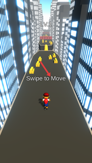 1、进入游戏关卡,屏幕上方显示“LV.1”,根据提示“SwipetoMove”,通过滑动屏幕控制角色移动。