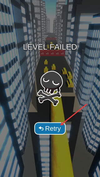 3、若游戏失败,点击【Retry】按钮重新开始当前关卡,继续尝试完成关卡任务。