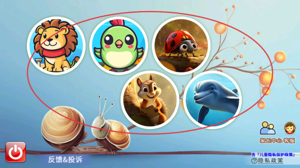 1、点击【狮子】【小鸟】【瓢虫】等图标,可进入对应动物相关的互动模块。