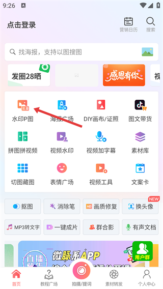 1、打开微脉水印相机,我们可以点击【水印P图】,进入对应功能界面哦。