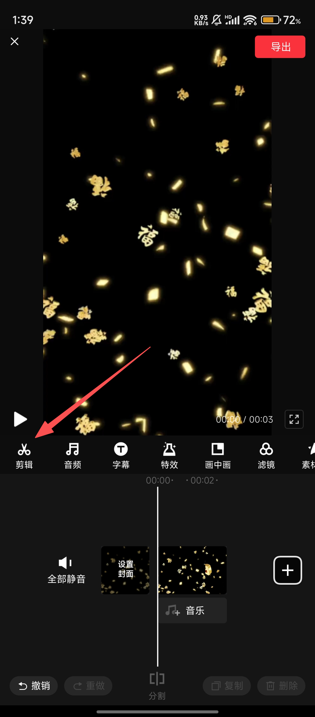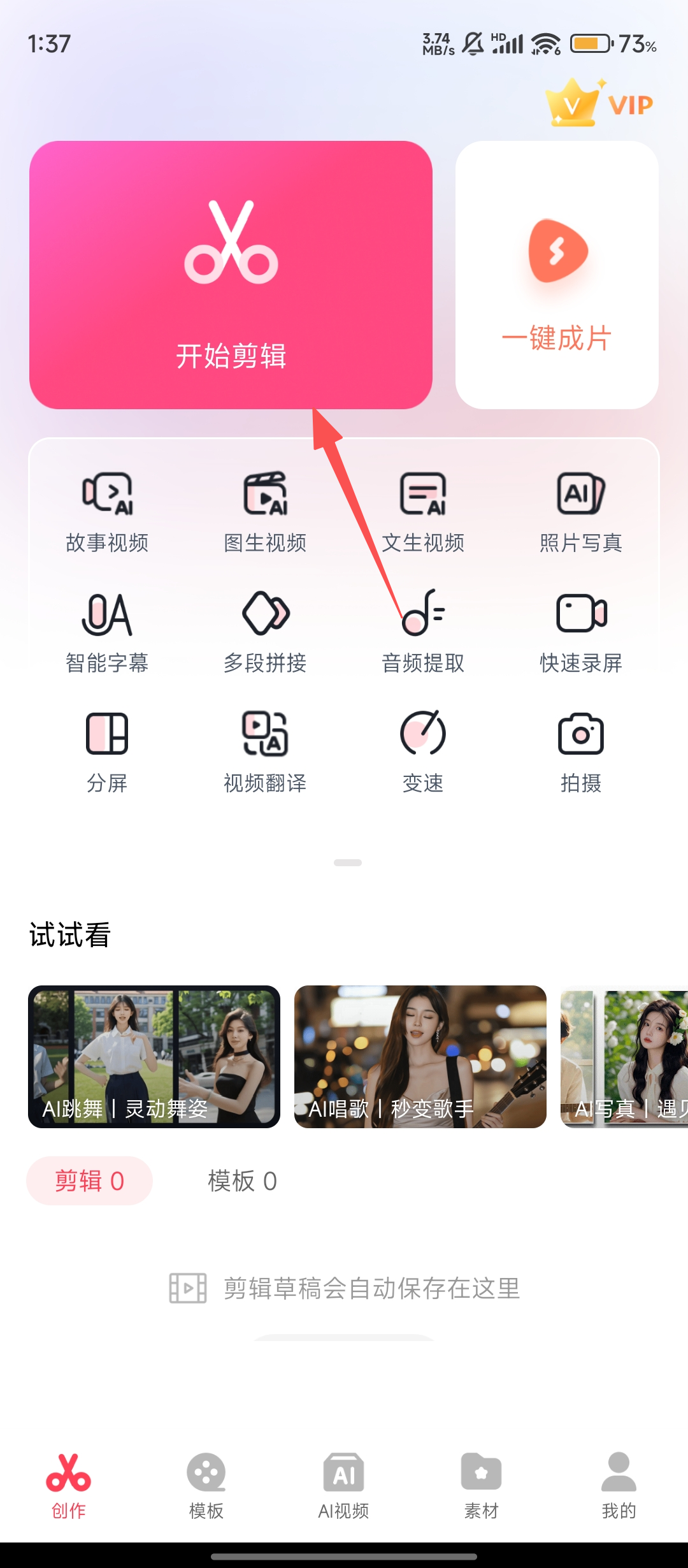 3、素材导入后,点击下方【剪辑】按钮,便可进入视频剪辑功能界面,开始编辑视频啦。