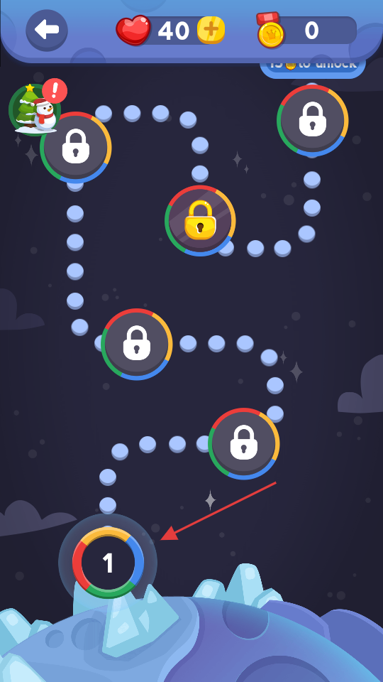 3、选关卡【1】,按路径前进,解锁新关卡,积累爱心。