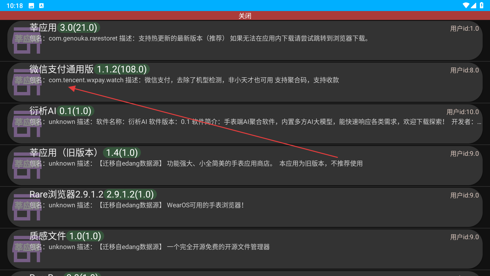 2、在应用列表,点选如【微信支付通用版】查看详情。