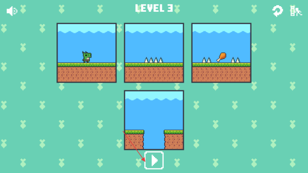 3、点播放键让恐龙行动,避尖刺、跨河流,吃到鸡腿通关,失败点重试继续。