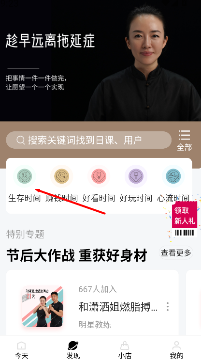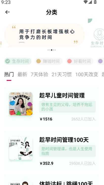 1、点击进入生存时间板块,可查看与自我成长相关的内容,了解行动规划与时间管理的具体方法。