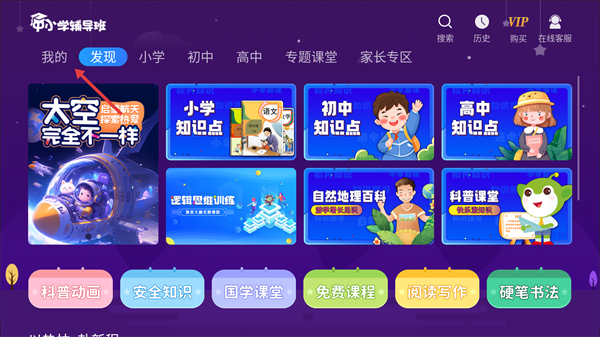 1、打开软件,在顶部选择【小学】【初中】【高中】等学段,进入对应学段课程区。