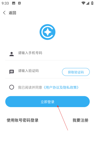 3、填写手机号码和验证码,勾选协议后点击【立即登录】完成操作。