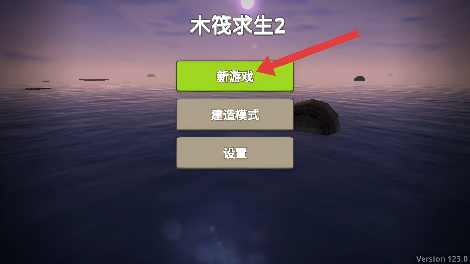 1、在游戏启动界面,点击【新游戏】按钮,开启【木筏求生2】的冒险之旅。