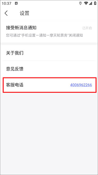 2、在设置页面中即可查看到客服电话,其号码为 4006962266。