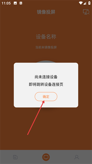 2、点击页面中的“镜像投屏”按钮,触发设备连接的提示弹窗。