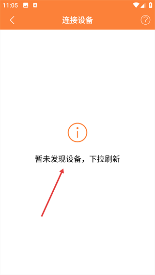 4、进入连接设备页面,若显示“暂未发现设备”,可通过下拉页面的方式,刷新找到设备。