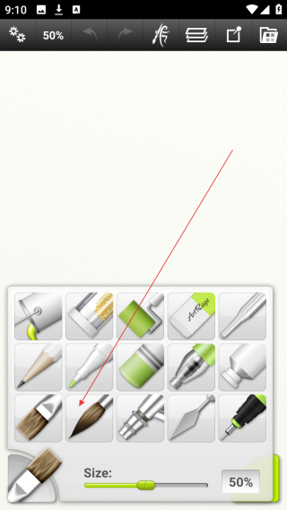 1、在绘画APP首页,点击左下角【画笔】图标,展开画笔选项。