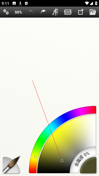 3、点击右侧【色轮】,选择绘画所需的【颜色】。