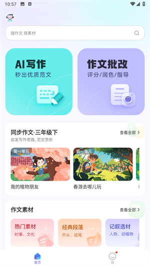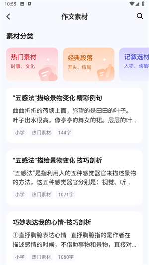 3、范文与素材:提供丰富作文素材与范文,支持关键词搜索。